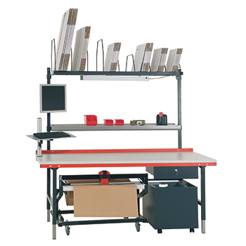 Unsere Packtische bilden nicht nur den perfekten ergonomischen Arbeitsplatz und steigern dadurch Produktivität, auch haben Sie alle Verpackungsmaterialien, wie Füllmaterial, Klebeband und was Sie sonst noch im Packalltag benötigen griffbereit.