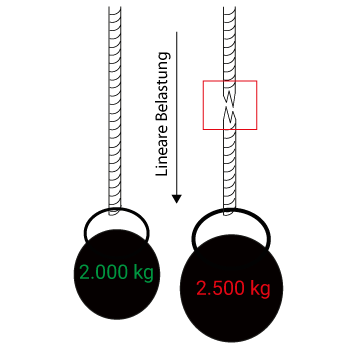An einem Seil mit einer linearen Bruchlast von 2.000 daN kann ein Gegenstand mit 2.000 kg (= Kraft) befestigt werden, ohne dass das Seil reißt.