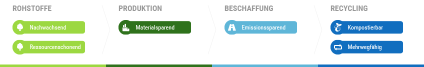 Wussten Sie, dass mit dem Rohstoff Gras doppelt so viel CO2 eingespart wird, als mit Kartonagen-Verpackungen? Bei der Beschaffung gilt es Emissionen in Bezug auf Transportverpackung zu reduzieren und damit möglichst wenig Kohlendioxid-Emissionen auszustoßen.